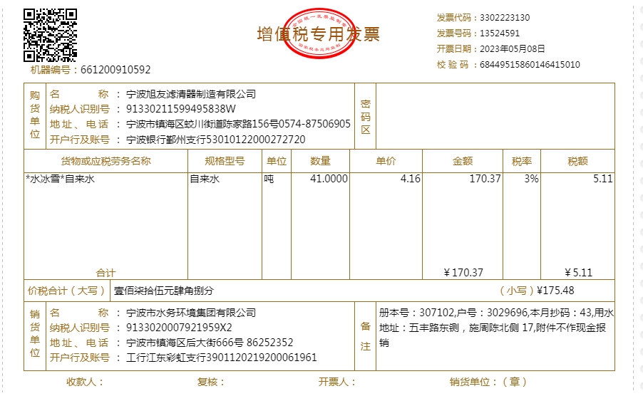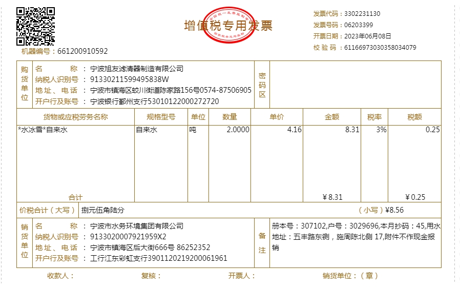 2023年水费发票